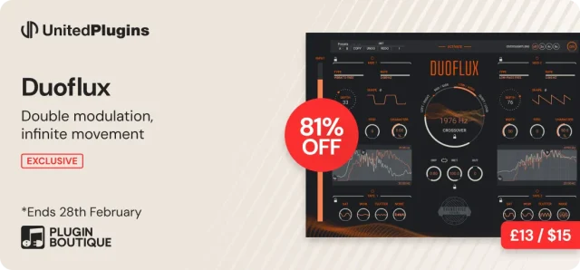 | United Plugins | Duoflux | モジュレーション | ¥2,100 | 2月28日まで | 入門向け |