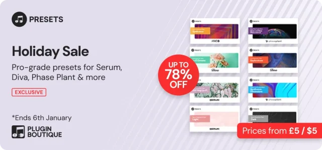 | Plugin Boutique | Plugin Boutique Presets New Year Sale | プリセット | 78%OFF | 1月31日まで | 最大割引 |