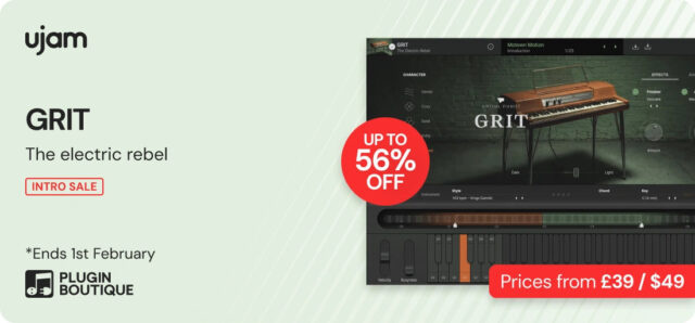 | UJAM | Virtual Pianist GRIT (Loyalty) | ピアノ音源 | ¥7,100 | 1月25日まで | 既存ユーザー向け |